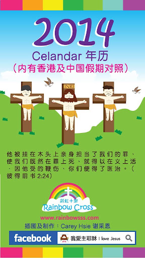 彩虹十架连续四年推出福音挂历, 今次推出手机版【2014 calendar 福音小挂历】