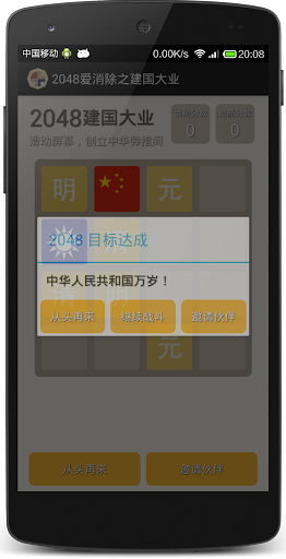 2048安卓版之建国大业,界面漂亮简介大方,操作方便,画面流畅