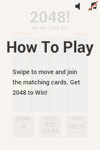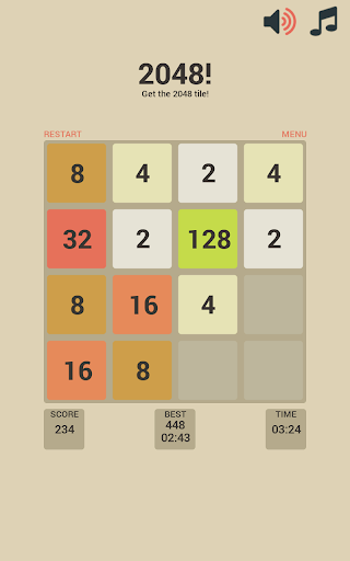 2048益智遊戲是一個很酷和有趣的單人遊戲的滑動塊益智遊戲。幻燈片編號的瓷磚將它們結合起來,並建立與數字2048瓦。滑動屏幕向左移動的瓷磚,向右,向上和向下。如果相同數量的2瓦碰撞而移動,它們將合併成一個瓷磚與瓷磚2是相撞的總價值。動不動,一個新的瓷磚會隨機出現在電路板與2或4的值的外框上的空白區。當2048值的瓷磚出現在黑板上,由此名比賽贏遊戲。玩,玩得開心!