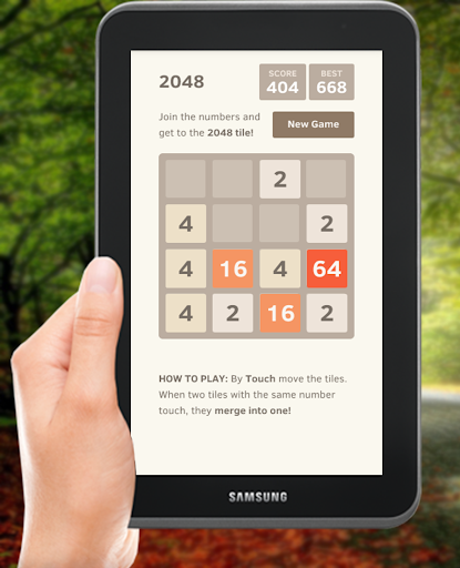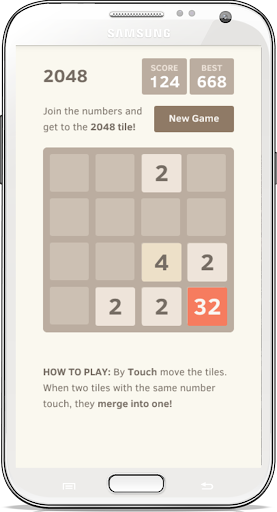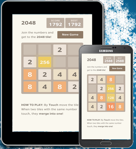 滑動移動的瓦片,當兩個瓷磚具有相同編號的觸摸,它們合併成一個。
