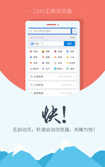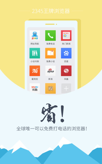 2345手机浏览器是一款符合中国人使用习惯的移动浏览器,集成了网址导航、新闻资讯、影视娱乐等内容,并且是全球唯一可以免费打电话的手机浏览器。一个应用满足所有上网需要!