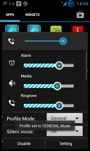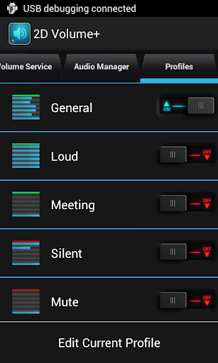 2.The next important feature is 'Sound Profiles'. By this. You can have Sound Profile in your device which is not Available before, you can use themes in the main of app or in Volume+ Popup, the Sound Profiles contain: General, Loud, Silent, Vibrate, Meeting and Mute profile,