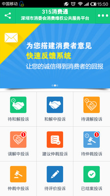 “315消费通(商家版)”是深圳市消费者委员会推出的公共服务平台。互联网革命使消费者真正站在了舞台的中央,也为经营者更直接全面了解消费者创造了条件。为了更好地为消费者和诚信经营者传递信任,共建消费信用新文明,基于互联网理念,深圳市消费者委员会推出了 “315消费通(商家版)”。注册商家可以通过此应用快捷便利地处理消费者的投诉。