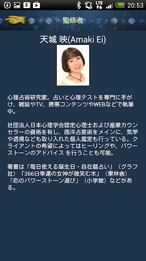 社団法人日本心理学会認定心理士および産業カウンセラーの資格を有し、西洋占星術をメインに、気学や透視なども取り入れた個人鑑定も行っている。クライアントの希望によってはヒーリングや、パワーストーンのアドバイス を行うことも可能。