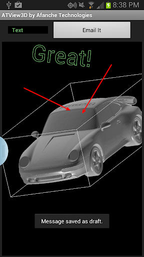 The app provides snapshot feature so that you can take a snapshot of your 3D model, and draw remarks on it and share it with your coworkers through email.