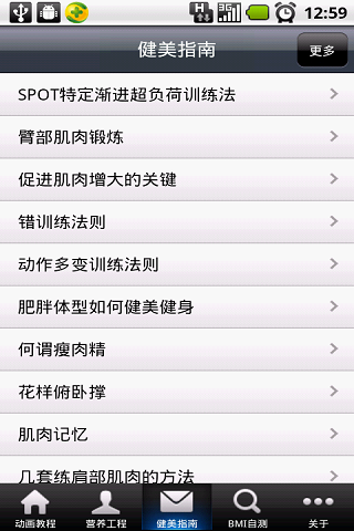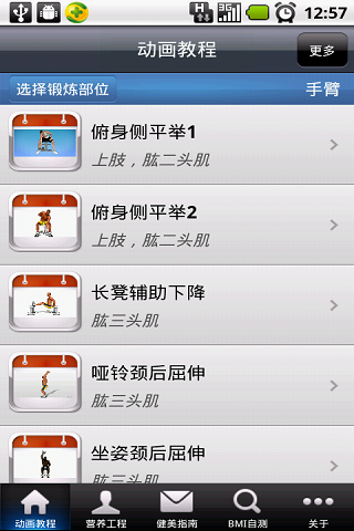 1、涵盖300多个标准的健身动作真人3D动画示范,涉及背部、胸部、手臂、肩部、腿部、腹部及臀部的训练!3D动画更逼真,演示更到位,助您轻松掌握健身动作要领;