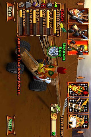 3D暴走卡丁车漂移山地的玩法类似于跑跑卡丁车,但是3D的画面让游戏更加精彩!玩家需要控制卡丁车极速向前冲,把你的对手远远抛在后面!游戏拥有8辆卡丁车供选择,15首歌曲,3个难度级别,每辆赛车都有自己不同的特性!途中有凤梨道具可以吃,吃完之后就有一次随机抽取道具的机会,途中要注意一些类似于凤梨的地雷等陷阱,当然也能够吃到一些道具,如地雷等.使用这些道具去摆平你的对手,赢得冠军!