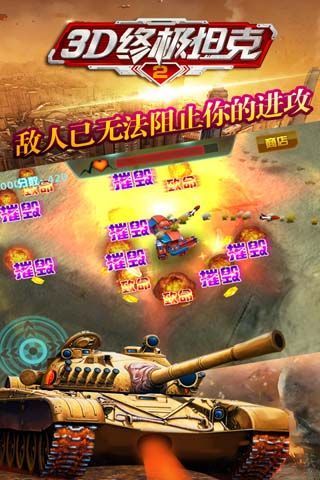 2014最值得期待的《3D终极坦克2》疯狂来袭!小伙伴们,死神坦克已经碾过战场向你走来,还不驾驶你的钢铁屠夫奋力应敌吗?来吧,扛起攻城略地、保卫家园的使命,为做一名伟大的战争终结者而战!