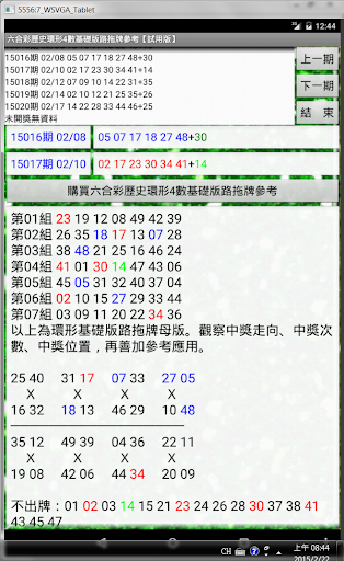 本試用版限制為按【下一期】只能到獎號前三期止,無法按到當期。主旨為可按【上一期】向上比對歷史版路效果之用。意者請支持正版購買六合彩歷史環形4數基礎版路拖牌參考