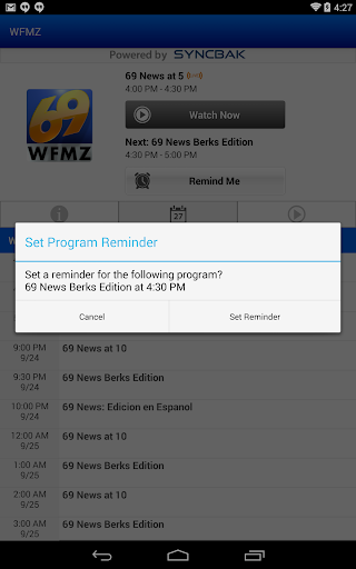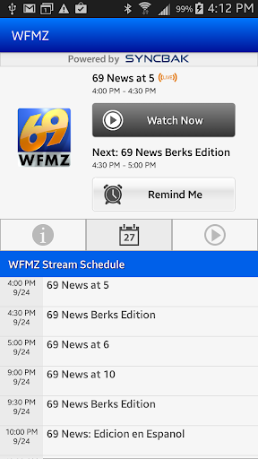 The 69 WFMZ Live App streams 69 News and other select WFMZ-TV programming. You can watch every 69 News broadcast live right on your mobile device. Stay current without changing your plans and get news, weather, sports, traffic, emergencies, and breaking stories, as well as some syndicated entertainment programming as it becomes available. With our on demand feature, you can watch newscasts and stories you may have missed. Also, you can watch the latest weather information live on the 69 News AccuWeather Channel. Now you can take the power of 69 News and WFMZ-TV with you anywhere!
