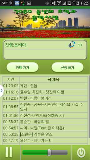 음악을 청취할 수 있으면 듣고 싶은 음악을 다음카페를 이용하여