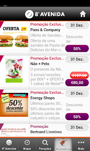 Esta aplicação gratuita dispõe de um design apelativo e variadas funcionalidades para que possa conhecer o 8ª Avenida da forma mais cómoda e útil. Disponibiliza‐lhe ainda informações sobre as suas lojas favoritas, como a C&A, a Cortefiel ou Cinemas Cineplace, bem como um mapa dinâmico com os percursos para as encontrar.