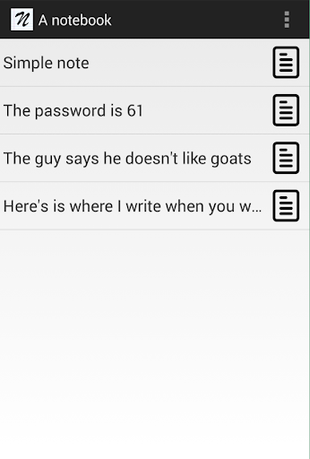 This app is for the people who want to save little texts very quickly. You only need to click the menu button and add a new note, write your note and press the return button and saved.