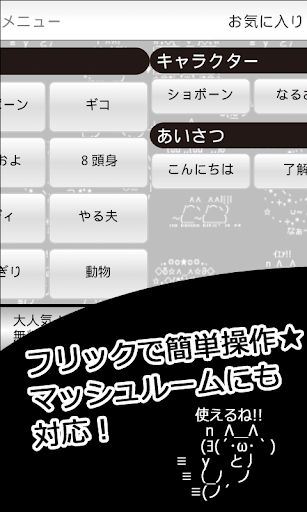 AAスタンプはアスキーアート(AA)をスマートフォンで簡単に入力できるようにしたAA入力支援アプリです。
