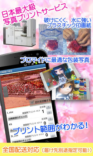 AndroidスマートフォンからLサイズ、2L、KG、6P、6PW、PostCardなどがご注文頂けるアプリです。