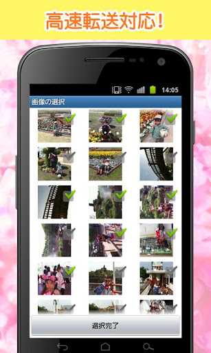 ①写真のフォルダから画像をチェックして「選択完了」をクリック