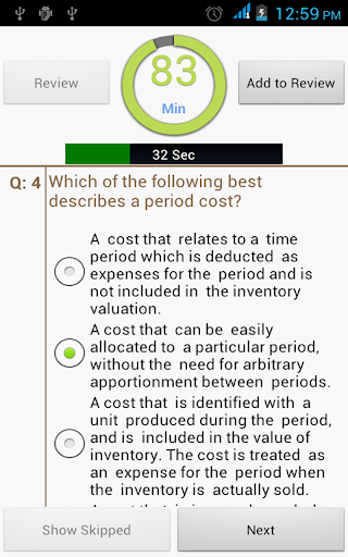 这款Android应用程序提供了选择题,那么你可以准备的“ACCA F2管理会计”每章传“ACCA F2”当然。一旦你确信你的考试准备,那么你可以使用我们的应用程序的“模拟”功能,通过求解实体模型的论文来评价自己。它采用50位的所有章节随机抽题测试你的技巧和能力。如你所愿自由,你可以采取许多考试。这将让您的所有attempts.You的历史并不需要支付任何费用出现在您的模拟了考试。