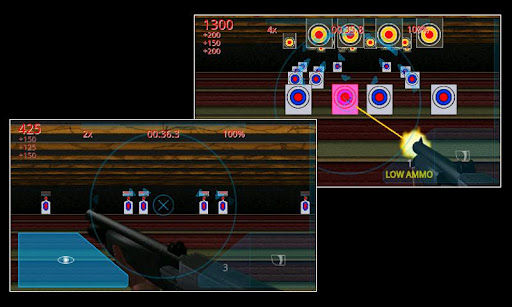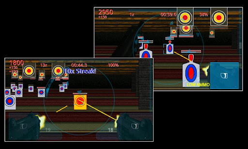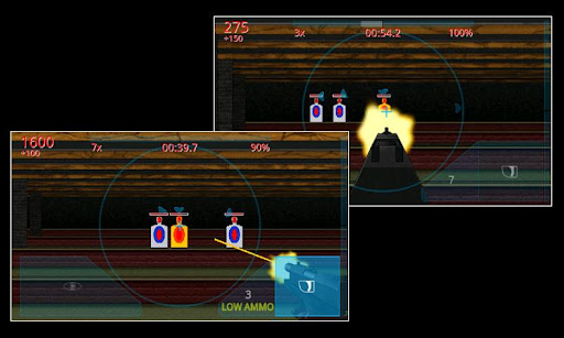 Tilt the phone, or use Touch mode and drag your finger to aim your weapon. Line the target up in your cross hair and shoot, and work on your accuracy to achieve your highest score.