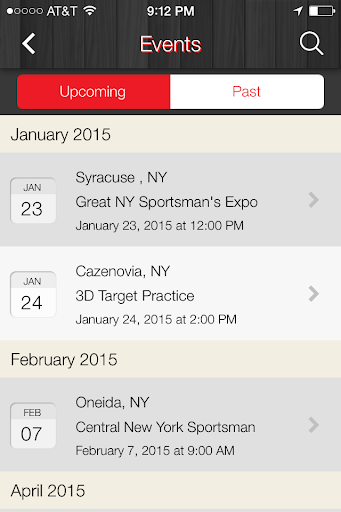 Our app events calendar is the best place to find out when we'll be holding 3D shooting events, attending local sportsmen's shows or holding open house at our shop.