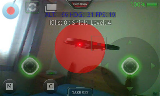 When a successful Bluetooth connection is made to your opponent, then ARDrone Flight will show the combat mode, with aiming circle and missile and chaff buttons.