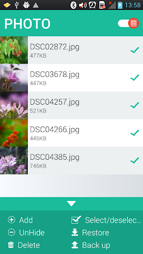 3. Change logic for auto backup: if there are some error occur when hide/unhide files (sdcard full), users unsinstall app, install app again, the previous hidden files remain
