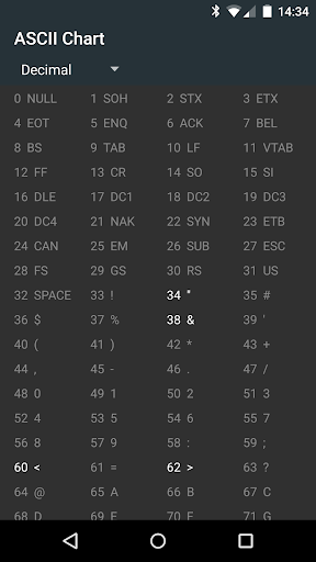 A simple ASCII Chart for developers or anyone who needs to lookup ASCII values for characters. Full character range supported up to 255.