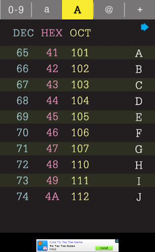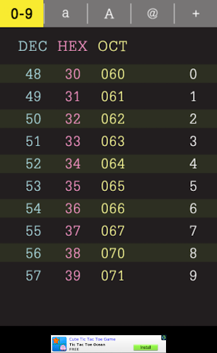 ASCII Chart is a ASCII table that qrganize ASCII table in to category so you can easiest find what you looking for.