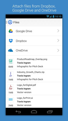 Acompli为 Android 用户提供了一种原生电子邮件、Gmail 之外的,新的电子邮件处理方案。具体来说,Acompli 是一个基于电子邮件,同时整合了通讯录、日历和附件文件收发和管理在内多种功能的应用,当使用原生电子邮件应用的用户下载附件之后转发邮件还需要在应用间跳来跳去的时候,Acompli 则直接在应用内将功能全部集中,一站式解决问题。