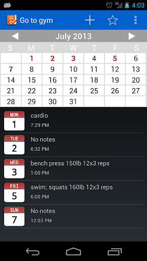 - Entries displayed on a monthly calendar