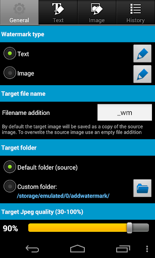 • To import custom fonts copy up to 20 TrueType or OpenType fonts to folder "addwatermark/custom_fonts" on your device.