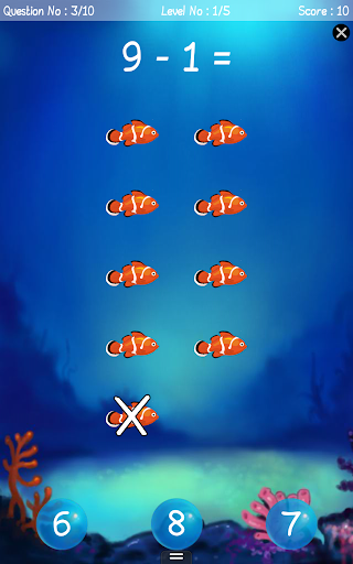 Learning Math has never been this fun! This innovative math app is for parents whose kids are in the first or second grade or in the age group 3 - 6. With this educational app, kids can learn addition and subtraction underwater with fishes. Small kids can easily practice their math skills - addition and subtraction - with this fun game. Children can master Math skills in an interesting and entertaining set up.