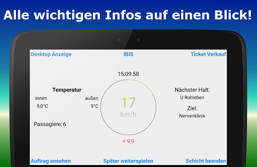 1. Sehe alle wichtigen Informationen wie Geschwindigkeit, Anzahl der Fahrgäste, Verspätung, nächste Haltestelle usw. auf deinem Smartphone! Zusätzlich kannst du dir diese Informationen auch auf deinem Zweitmonitor anzeigen lassen.