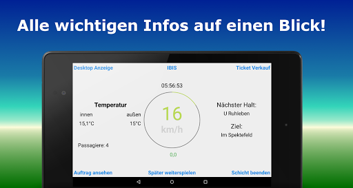 Spiele ohne Auftrag ganz normal OMSI mit den Anzeigen und Steuerungen der App.