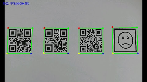 For preprocessing of the visual field camera is used OpenCV library. Designed preprocessing string searches a perspective transforms possible QR codes. This is suppressed a shape distortion QR code that would otherwise reduce the successful decoding. At the same time the preprocessing string applied unsharp mask, which reduces the effect of motion blur image caused by the camera motion. Thus preprocessing scene is finally decoded using ZXing library.