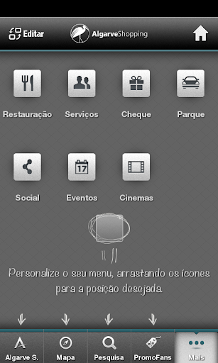 Esta aplicação gratuita dispõe de um design apelativo e variadas funcionalidades para que possa conhecer o AlgarveShopping da forma mais cómoda e útil. Esta aplicação disponibiliza-lhe ainda informações sobre as suas lojas favoritas, como a Zara, a Fnac C&A, H&M ou Cineplace, bem como um mapa dinâmico com os percursos para as encontrar.