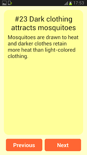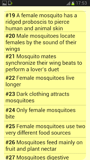 Mosquitoes are the deadliest animals on Earth.Now is your change to learn to know the enemy better! Over 60 facts about mosquitoes with longer explanations. Did you know that mosquitoes can consume more than twice their body weight in blood? This and many more facts in this handy application.
