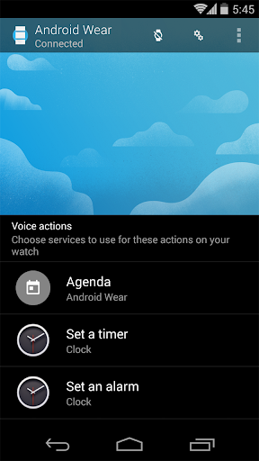 The Android Wear app is the link to Android wearables. Control voice action preferences, adjust notification settings, and configure devices.