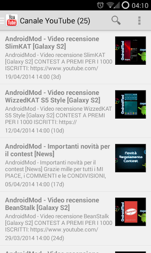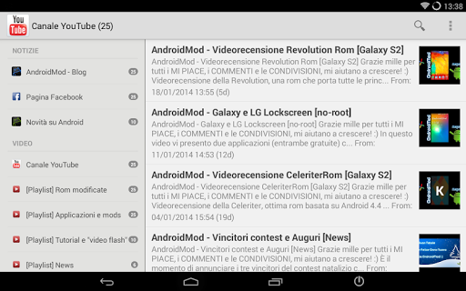 • Video: “Canale Youtube”, “[Playlist] Rom modificate”, “[Playlist] Moduli Xposed e MODs”, “[Playlist] Applicazioni”, “[Playlist] Tutorial e video focus”, “[Playlist] News”;