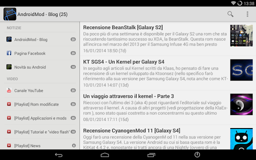 • Notizie: “AndroidMod- Blog”, “Pagina Facebook”, “Novità su Android”;