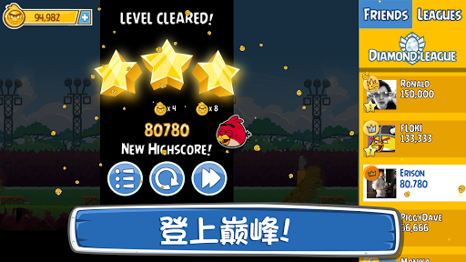 此外,还有全新的全球联赛机制!在狂欢的愤怒小鸟节中,挑战世界各地的数百万玩家,一起来全力弹射小鸟,奋勇战猪猪!赢得高分,提高排名,跨过七级台阶登顶(听起来简单吗?其实不然)。攀登越高,进步越难。而且,还要牢记,爬得高摔得狠噢……