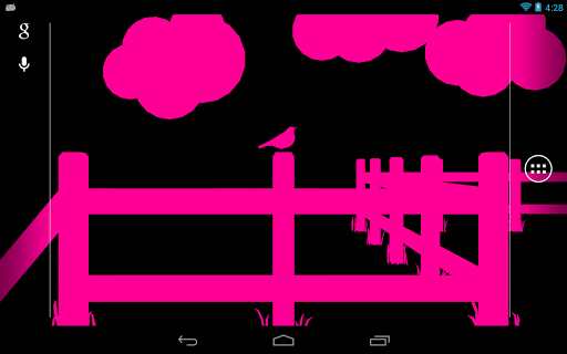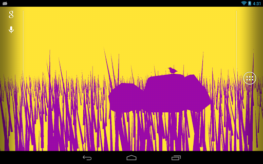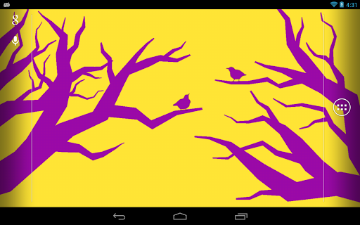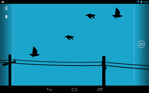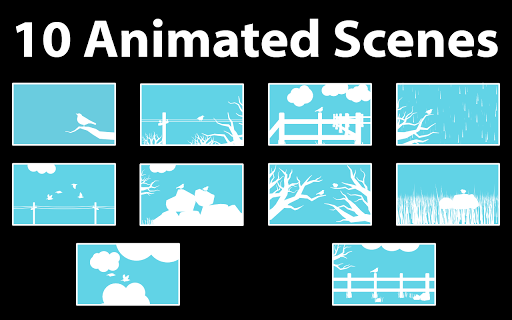 A relaxing Live Wallpaper with ten animations that cycle on your device. Each scene features stylized birds that fly, flutter and land. Clouds scroll, trees and grass sway and rain falls in different scenes. Each animation is under 30 seconds so the animations don't get stale. There is plenty of motion without distracting you from actually using your device.