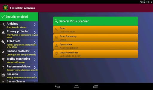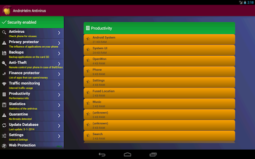 Antivirus Android AndroHelm for Androids Mobile Security PRO Full version with advanced features and facilities for the perfect operation of your mobile phone and Web security in any situations.
