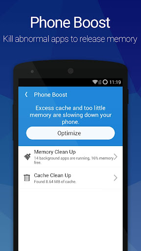 Phone Boost: One tap to close background apps to release phone memory and clear the cache, which will make your phone run faster.