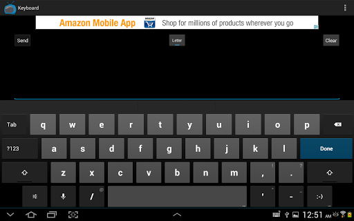 - Keyboard support that lets you type on your device and it sends the infrared codes either after every letter or all at once