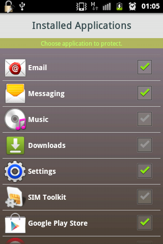 After you open the application first time enter the password as 1111. Select the Applications section of the screen that comes up, enter and select the applications you want to protect.