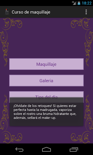 La aplicación consta de un curso básico de maquillaje, que te enseñara a como sacar partido a tu rostro aplicándote correctamente la base de maquillaje, la iluminación y contorno, el colorete, y como hacer destacar tus ojos y labios según su forma, para que tu mirada enamore.