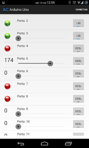 O aplicativo precisa que um código seja gravado no seu arduino antes da utilização. O código funciona em qualquer arduino.