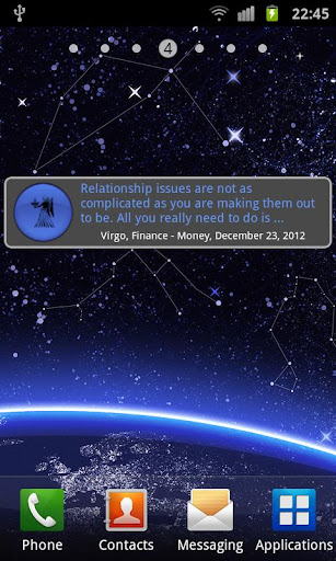 Daily horoscope on widget for signs: aries, taurus, gemini, cancer, leo, virgo, libra, scorpio, sagittarius, capricorn, aquarius, pisces.
