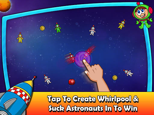 tap to create whirlpool & suck the astronauts in before the whirlpool closes. However, you can suck in only same colored astronauts so be careful!