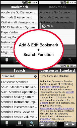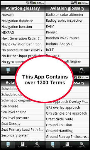 Aviation Glossary Plus+ is an application containing over 1300 aviation-related glossary terms. It is an excellent educational and reference application for pilots as well as those who have interest in airplanes and the aviation business. In particular, this application contains glossary terms in the following areas: